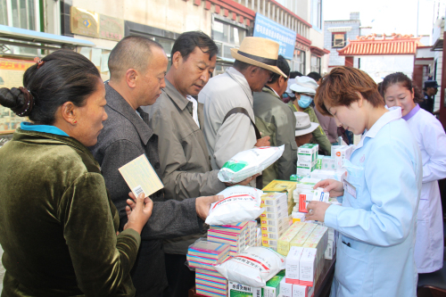 根據(jù)自治區(qū)工商聯(lián)《關(guān)于深化區(qū)直機(jī)關(guān)在職黨員到社區(qū)服務(wù)群眾活動》的統(tǒng)一安排:阜康醫(yī)藥有限公司四個黨支部,在張德才總院長的帶領(lǐng)下,一行8人在2015年8月8日上午到拉薩市城關(guān)區(qū)嘎瑪貢桑社區(qū)進(jìn)行義診活動,帶著1.5萬余元藥品和便攜式B超,心電圖等。在半天時間內(nèi)貢義診380余人,為社區(qū)群眾進(jìn)行了測量血壓、發(fā)放藥品、健康咨詢等,受到了社區(qū)群眾的熱烈歡迎。期間正在慰問群眾的自治區(qū)政協(xié)副主席阿沛晉源,和區(qū)統(tǒng)戰(zhàn)部副部長、區(qū)工商聯(lián)黨組副書記李瑞富等領(lǐng)導(dǎo)的高度評價。