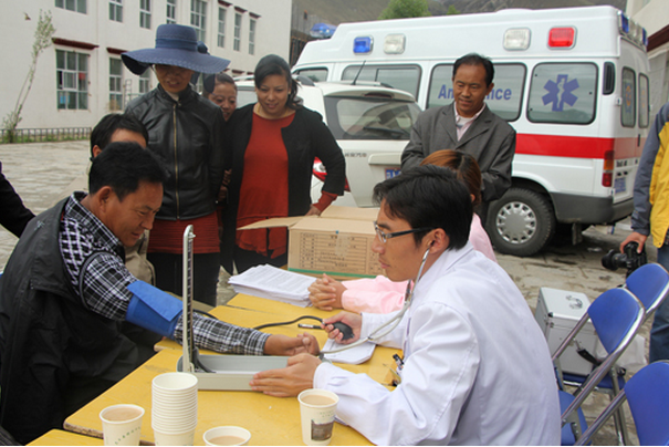對(duì)于過為尼木縣鄉(xiāng)村小學(xué)老師們的體檢,董發(fā)善醫(yī)生說:“大部分老師都患有血管神經(jīng)性頭疼和不同程度的胃病和膽囊疾病。這是由于在鄉(xiāng)村學(xué)校中,老師們工作繁忙,經(jīng)常忘記吃飯或者到了吃飯的時(shí)候就湊合吃幾片風(fēng)干肉,喝幾杯酥油茶。這是造成鄉(xiāng)村老師腸胃和膽囊疾病的原因。此外,由于老師們經(jīng)常站著講課,腰椎疾病的患病率比其他行業(yè)的要高。”在體檢的同時(shí),醫(yī)護(hù)人員還向老師們發(fā)放了常見疾病預(yù)防知識(shí)的宣傳材料。