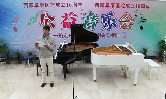 西藏阜康集團(tuán)董事長王斌致詞:“阜康醫(yī)藥發(fā)展有限公司走過了十六個(gè)年頭,阜康醫(yī)院走過了十個(gè)年頭,能夠取得今天的成就,離不開各級(jí)政府部門、社會(huì)各界友好人士長期以來對阜康的關(guān)心,離不開西藏百姓對阜康的信賴。今天很榮幸邀請到國外友人廣瀨清隆先生及邊天、董樂晨、周于蒨四位音樂家來到西藏為大家公益演出。一路走來,阜康感謝有您相伴,衷心感謝大家,希望到場的朋友們盡情享受這美妙的音樂之旅。”