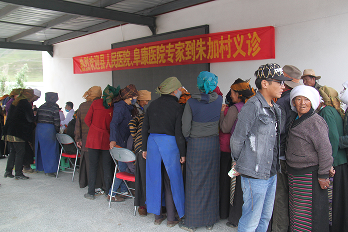 2016年7月,林周縣朱加村村委會(huì)、甘曲村村委會(huì)受當(dāng)?shù)卮迕袼?,與林周縣人民醫(yī)院和西藏阜康醫(yī)院相關(guān)負(fù)責(zé)人取得聯(lián)系,希望能夠派遣醫(yī)療義診隊(duì)為當(dāng)?shù)卮迕衩赓M(fèi)義診。7月29日經(jīng)相關(guān)領(lǐng)導(dǎo)協(xié)調(diào),西藏阜康醫(yī)院派出了由外科專家李玉仲、內(nèi)科專家劉占懷及幾名護(hù)理人員組成的義診小分隊(duì)先后前往朱加村、甘曲村為當(dāng)?shù)卮迕衩赓M(fèi)義診。