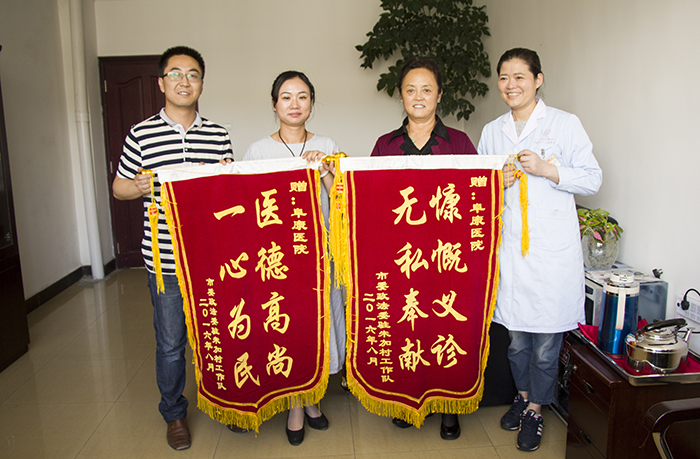 8月8日,為了表彰阜康醫(yī)院對(duì)林周縣朱加村和甘曲村人民群眾衛(wèi)生健康意識(shí)的提高和衛(wèi)生保健體系的完善所做出的貢獻(xiàn),市委政法委駐朱加村、甘曲村工作隊(duì)特意為阜康醫(yī)院送來錦旗,以示感謝和表彰,阜康醫(yī)院總院長敖德秀同志、阜康醫(yī)院副院長扎西頓珠同志代表阜康醫(yī)院接受了表彰。敖德秀總院長表示,我們阜康醫(yī)院一定會(huì)再接再厲把健康帶到西藏的各個(gè)村落,為西藏人民的健康事業(yè)做出應(yīng)有的貢獻(xiàn)。