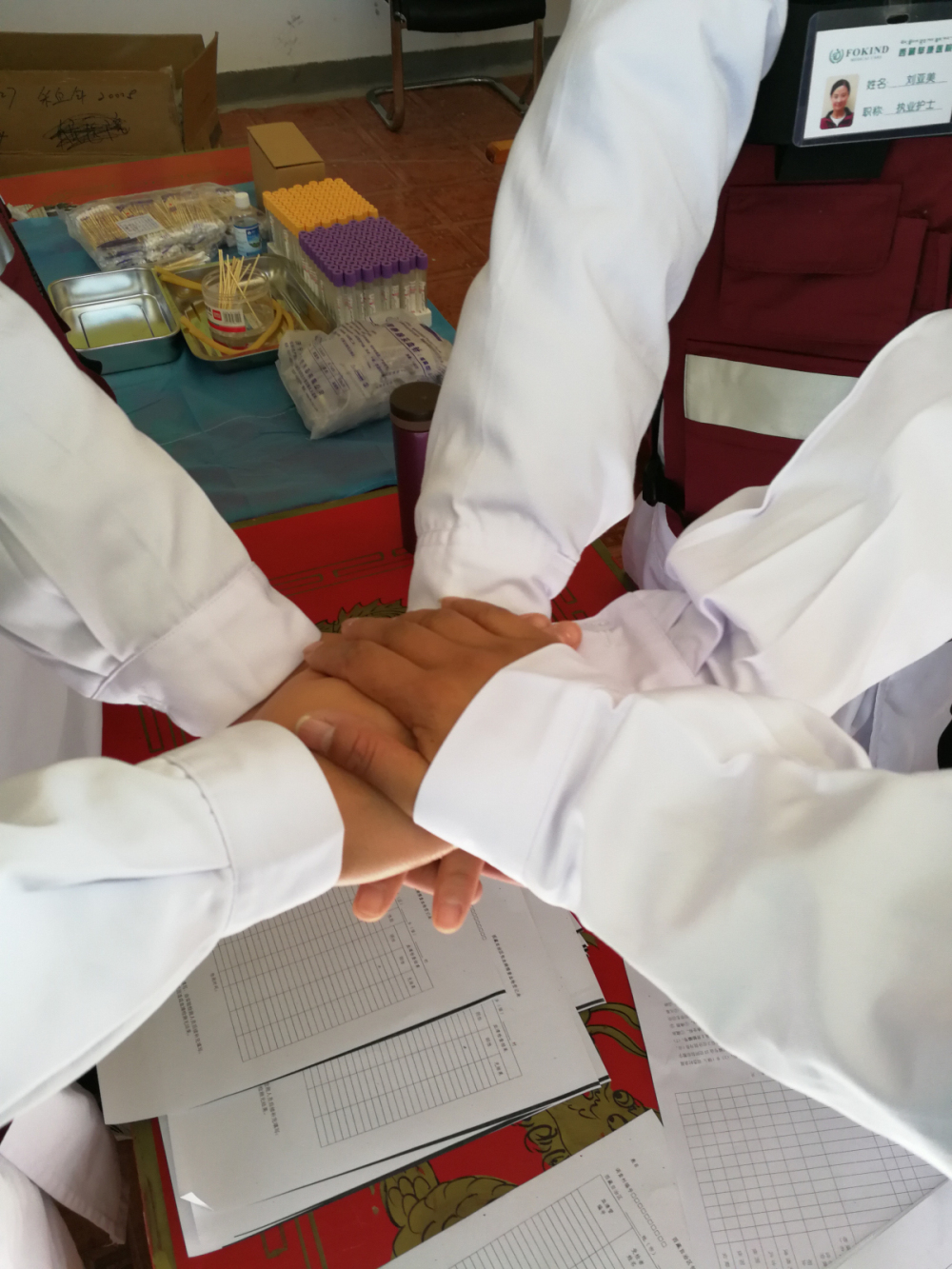 前來(lái)檢查的群眾有很多,配合我們工作的還有三位當(dāng)?shù)匦l(wèi)生院的小姑娘,她們主要負(fù)責(zé)登記和信息錄入,由于檢查群眾太多,她們的桌子被圍得水泄不通,但她們始終面帶微笑,一絲不茍地小心翼翼登記,生怕工作出現(xiàn)紕漏。