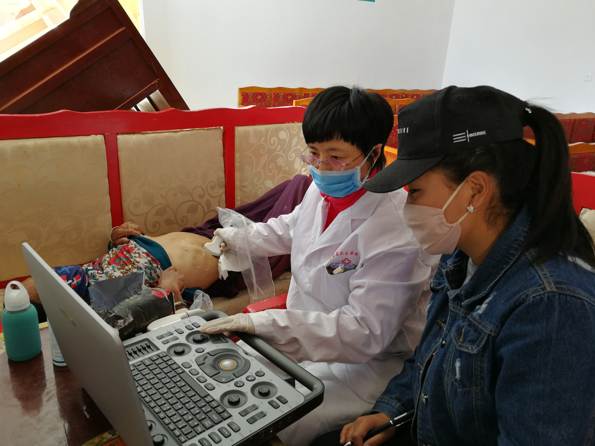 劉冬梅醫(yī)生和格桑拉吉被分到一組,負(fù)責(zé)B超檢查,在這里大部分群眾不會(huì)漢語(yǔ),格桑拉吉除了要負(fù)責(zé)B超檢查、做錄入還要負(fù)責(zé)翻譯工作。遵照黨委書(shū)記王斌同志的指示,劉冬梅醫(yī)生除了要高質(zhì)量地完成政府安排的肝臟B超檢查外,還要額外為群眾檢查膽、腎臟,這無(wú)疑極大地增加了她的工作量。在工作中的她兢兢業(yè)業(yè),一絲不茍,那專注的神情,是我見(jiàn)過(guò)的最美的樣子。