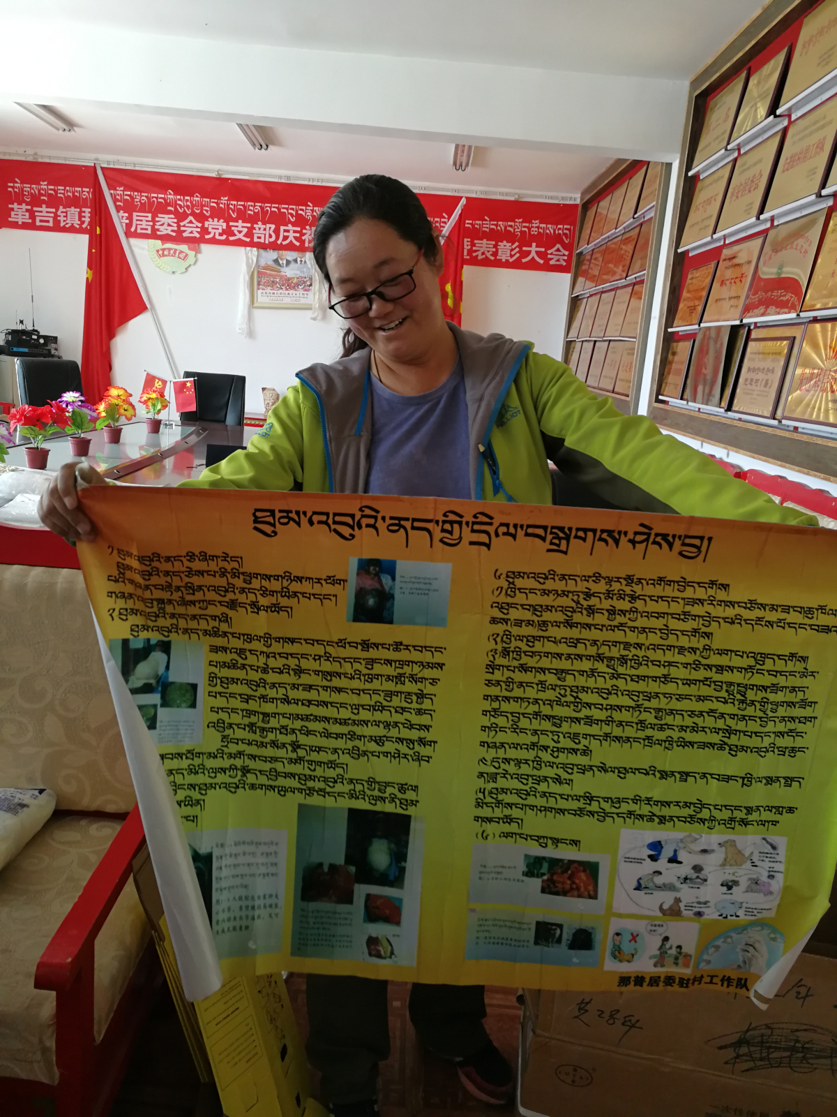 為了做好包蟲(chóng)病宣傳工作,她自己設(shè)計(jì)了很多藏語(yǔ)版的包蟲(chóng)病宣傳資料,挨家挨戶宣傳指導(dǎo),為了與群眾打成一片,她自學(xué)家電維修,誰(shuí)家里電器壞了第一個(gè)準(zhǔn)是給她打電話。