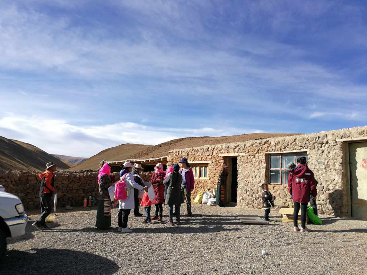 驅(qū)車兩個多小時(shí),中午11點(diǎn)我們到達(dá)目的地,篩查點(diǎn)設(shè)在那普居委會四組的一處牧業(yè)點(diǎn)。此處是由政府出資,為方便牧民放牧?xí)r居住所修建的石頭房子。此地名為“白色水井”,名字源于不遠(yuǎn)處終年不枯竭的水井。