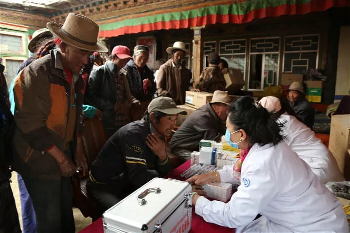 據(jù)了解,芒熱牧村農(nóng)牧民因交通不便、語言溝通等問題,就醫(yī)購藥十分不便。為緩解這一難題,積極響應國家號召,推進健康扶貧事業(yè)的發(fā)展,“西藏阜康醫(yī)療股份有限公司”應當?shù)伛v村工作隊的邀請,組織義診隊協(xié)助基金會開展本次活動。