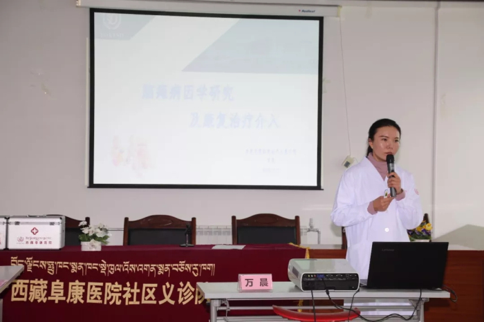 阜康醫(yī)院康復(fù)醫(yī)學(xué)科萬(wàn)晨老師給大家講解了最新的兒童康復(fù)理念,包括日常生活中腦癱的危險(xiǎn)因素、腦癱的發(fā)病率、病因,以及腦癱兒童康復(fù)介入、患者康復(fù)的流程與方法,并結(jié)合患者康復(fù)訓(xùn)練視頻,給服務(wù)中心治療師分享了康復(fù)訓(xùn)練的方法。同時(shí),阜康醫(yī)院義診組也為孩子們進(jìn)行了檢查并為他們免費(fèi)發(fā)放藥品,認(rèn)真詢(xún)問(wèn)患者用藥情況、耐心細(xì)致地說(shuō)明用藥方法。后期阜康醫(yī)院康復(fù)醫(yī)學(xué)科還將對(duì)每一位患者免費(fèi)提供三天的評(píng)估及康復(fù)指導(dǎo)。