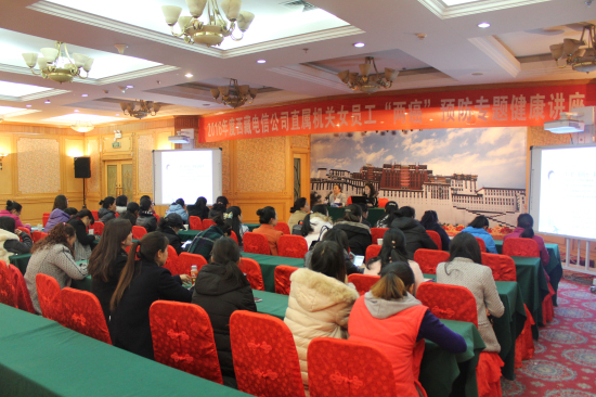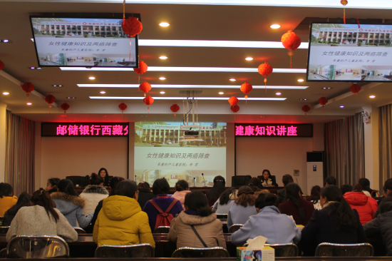 2016年3月7日下午,在三八婦女節(jié)即將來臨之際,我院李君副院長(zhǎng)受邀于西藏電信公司及中國(guó)郵政儲(chǔ)蓄銀行西藏自治區(qū)分行進(jìn)行女性健康知識(shí)、備孕二胎媽媽孕前檢查及“兩癌”篩查健康知識(shí)講座,并就女性“宮頸癌”、“乳腺癌”兩大癌癥預(yù)防篩查等健康知識(shí)作出詳細(xì)講解。