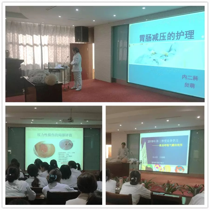 明玲護士長在此次授課中分享了本科室遇到的壓力性損傷患者的護理,重點講到“壓力性損傷敷料的使用方法”:各期壓力性損傷敷料的選擇,敷料使用前的皮膚護理方法、使用中敷料的觀察、使用后創(chuàng)面的效果評價。護士王麗娟、護士長贠萌分別對“腸胃減壓的護理”、“簡易呼吸氣囊的使用”進行了生動的講解。為鞏固本次培訓(xùn)知識,本次培訓(xùn)內(nèi)容將納入本月底理論考核。