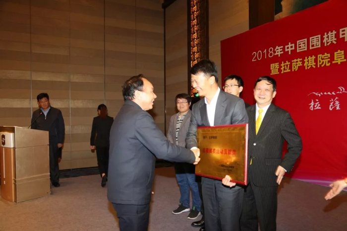 為表彰拉薩棋院阜康職業(yè)圍棋隊對西藏體育圍棋事業(yè)做出的巨大貢獻(xiàn),西藏自治區(qū)黨委副書記、主席齊扎拉代表黨委政府向拉薩棋院阜康職業(yè)圍棋隊領(lǐng)隊王斌頒發(fā)了“西藏自治區(qū)體育棋類貢獻(xiàn)獎”!肯定了阜康四年來支持拉薩棋院積極參與全國各項賽事并為圍棋在西藏的普及發(fā)展所做出的諸多工作。勉勵王斌繼續(xù)支持西藏的圍棋發(fā)展,一步一個腳印地做好醫(yī)療衛(wèi)生和體育文化工作。