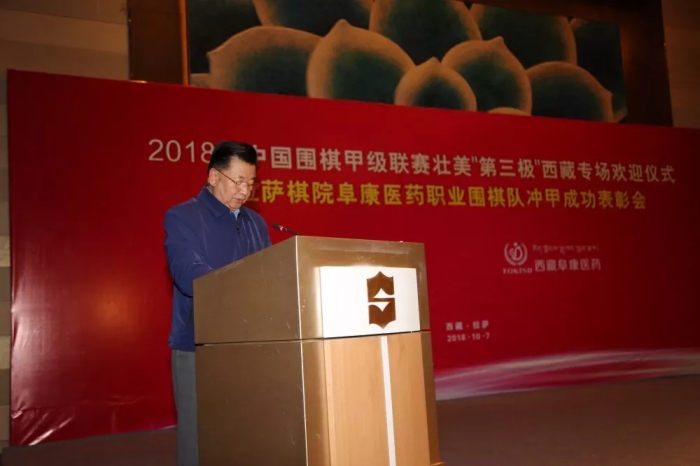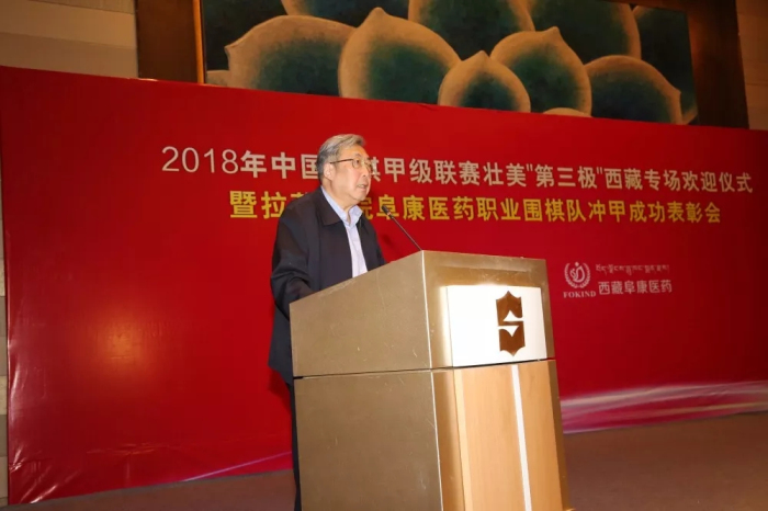中國圍棋協(xié)會主席林建超將軍在致辭中表示,拉薩棋院西藏阜康醫(yī)藥職業(yè)圍棋隊沖甲成功是全國圍棋運動中的一件大事。它首先改變了當(dāng)代中國圍棋運動的版圖,雪域高原第一次在中國圍棋甲級聯(lián)賽中占有了一席之地;其次,這次沖甲實現(xiàn)了西藏體育發(fā)展的一次突破,使西藏在全國性的體育賽事中,擁有了第一支甲級職業(yè)隊伍;第三,本次沖甲成功,為圍棋文化和藏式棋類文化的交融促進(jìn)提供了一個很好的契機(jī),為西藏地區(qū)棋文化的發(fā)展起到了很好的推動作用。這項成績來之不易,首先應(yīng)該歸功于自治區(qū)各級黨委、政府的重視,尤其是齊扎拉主席長期以來對包括圍棋、藏式棋等棋類活動的支持,有效促進(jìn)了這項中華民族優(yōu)秀傳統(tǒng)文化在雪域高原的普及與發(fā)展,這是與習(xí)近平總書記在十九大報告中提出的戰(zhàn)略目標(biāo)相一致的。