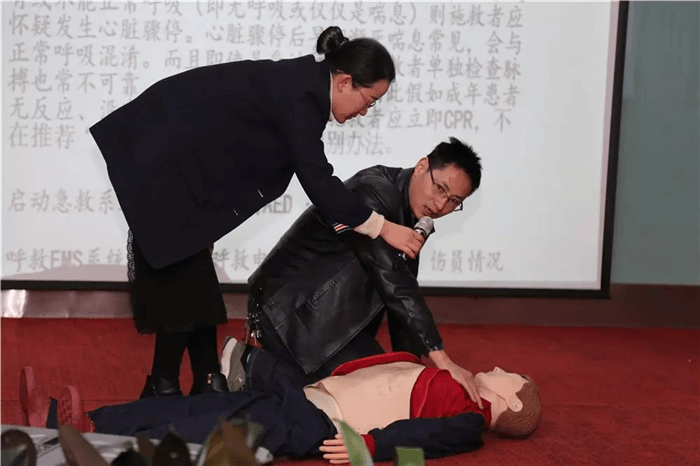其中“消防知識”和“心肺復蘇:BLS”等課程的授課講師不但進行了理論知識的講解,而且?guī)ьI各位學員進行了實踐演練。
