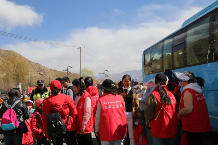 志愿者們乘車前往色拉寺