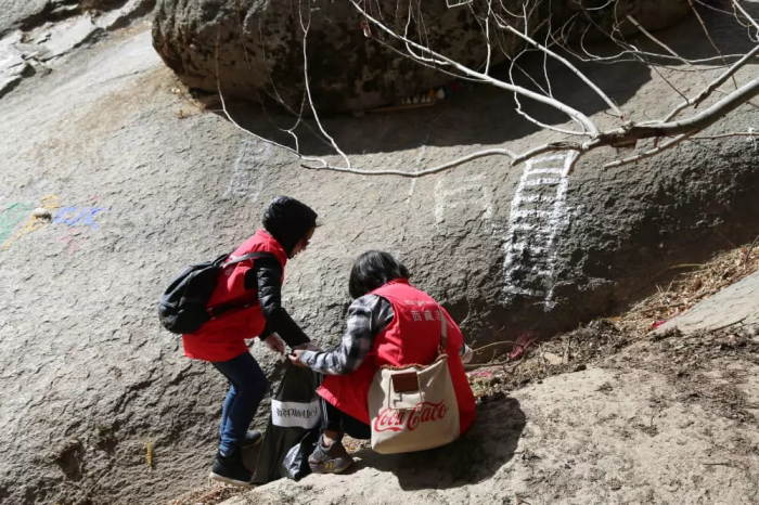 這時(shí)基金會(huì)的工作人員及時(shí)給大家發(fā)放了手套和垃圾袋。上山途中,同事們一邊享受著爬山帶來的樂趣,一邊把沿途的垃圾撿起放在事先準(zhǔn)備好的垃圾袋中,并將可回收垃圾和不可回收垃圾進(jìn)行分開收集。因?yàn)樯铰菲閸纾敬位顒?dòng)還準(zhǔn)備了急救箱,以防在爬山過程中出現(xiàn)身體不適等意外情況。