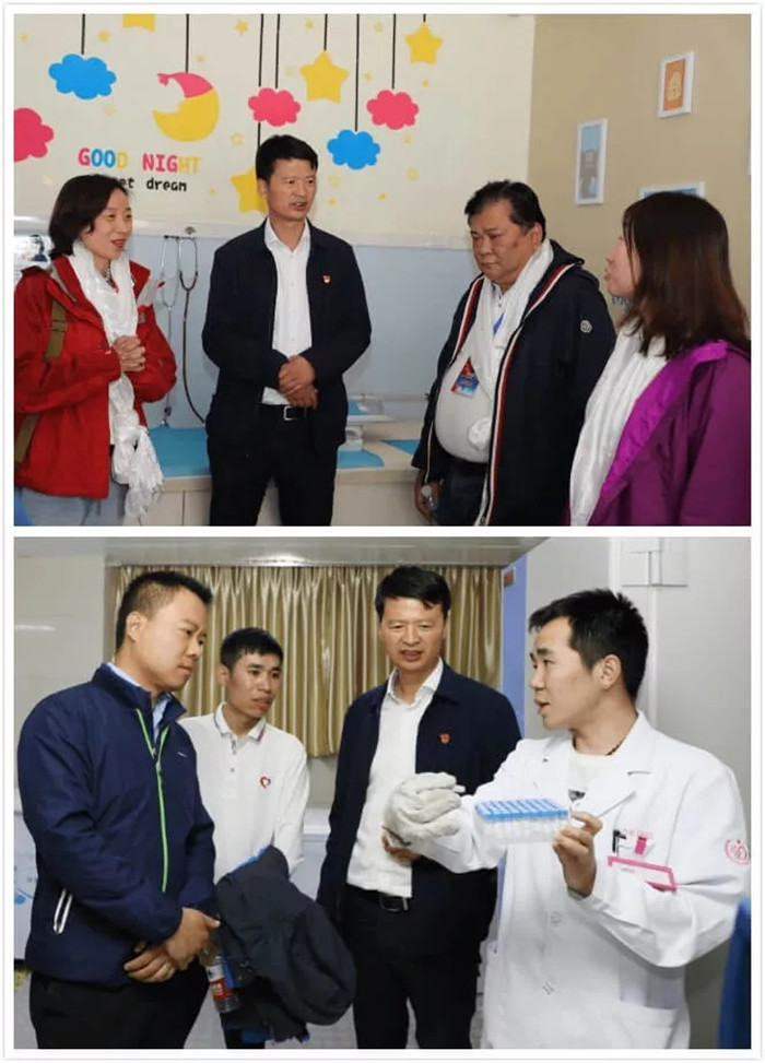 義診期間,中共中央統(tǒng)戰(zhàn)部七局處長郭鵬與“同心共鑄中國心”駐西藏秘書長趙士磊來到了阜康婦產(chǎn)兒童醫(yī)院詳細查看了正在井然有序進行的義診現(xiàn)場,在王斌董事長陪同下參觀阜康婦產(chǎn)兒童醫(yī)院院區(qū),聽取并查看了我院人類輔助生殖醫(yī)學中心等特色科室的開展情況。