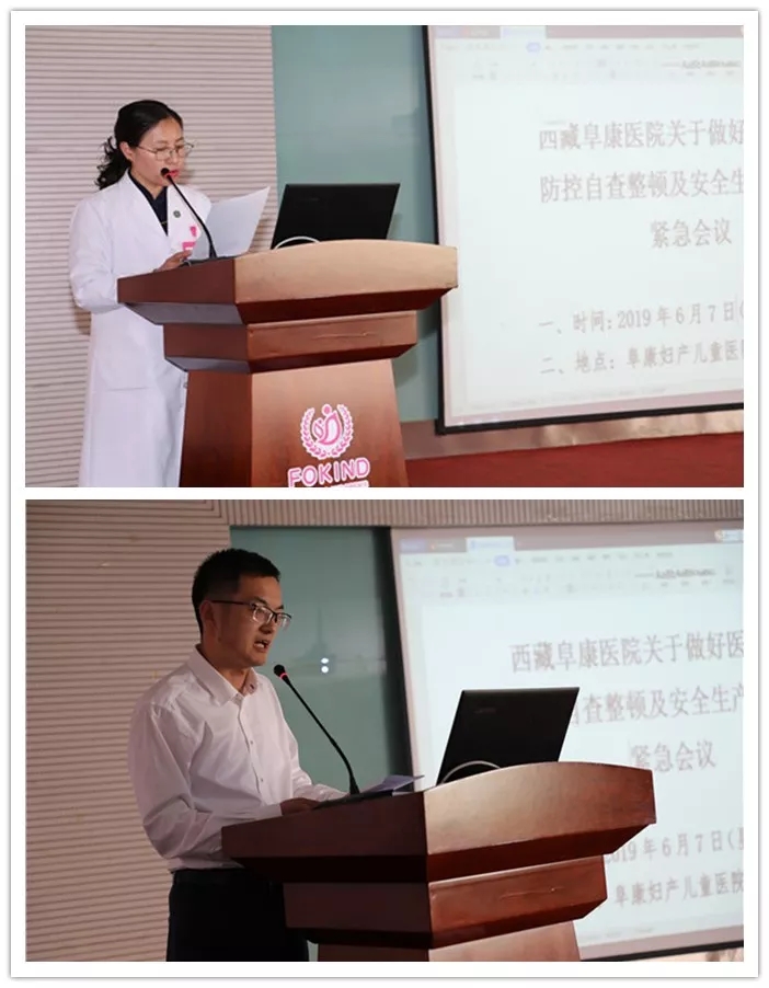 6月7日,西藏阜康醫(yī)院召集全院在崗中、高層領(lǐng)導(dǎo)在婦產(chǎn)兒童院區(qū)4樓會議室召開了關(guān)于做好醫(yī)院感染防控自查整頓及安全生產(chǎn)工作緊急會議。