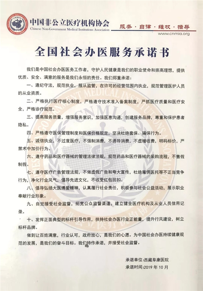 - · 熱烈慶祝西藏阜康醫(yī)院當選為中國非公立醫(yī)療機構協(xié)會健康體檢分會首屆常委單位