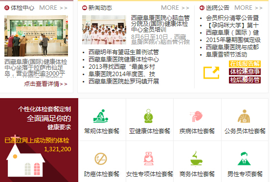 患者可以通過西藏阜康(國際)健康體檢中心網(wǎng)站,在線留言、在線即時通訊和集團進行互動溝通。還可通過網(wǎng)站選擇體檢套餐、 預(yù)約醫(yī)院體檢、獲取體檢報告果等便利。
