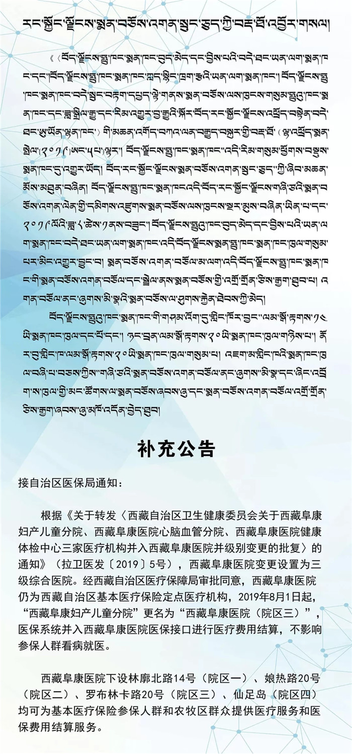 西藏創(chuàng)辦大型綜合性醫(yī)院:西藏阜康醫(yī)院、專業(yè)的婦產(chǎn)兒童醫(yī)院、獨立的健康體檢中心、專業(yè)的心腦血管醫(yī)院、自治區(qū)人類輔助生殖中心、藥品批發(fā)。