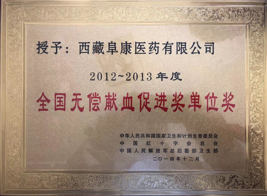 2012-2013年度 全國無償獻(xiàn)血促進(jìn)獎(jiǎng)單位獎(jiǎng)