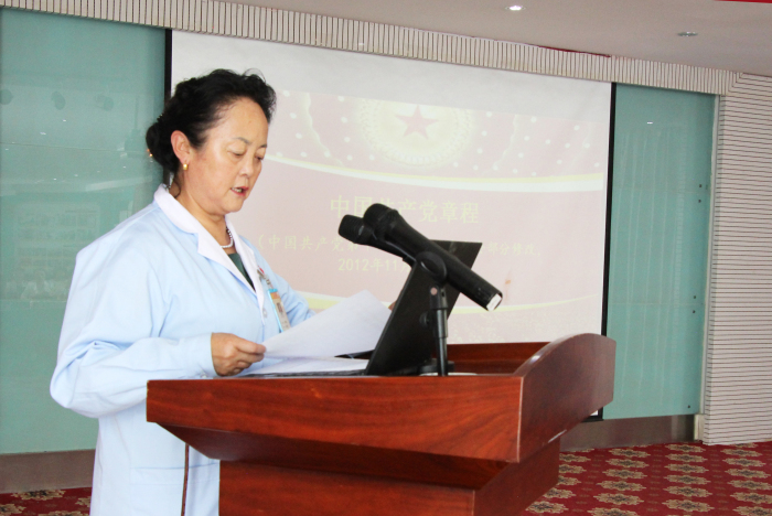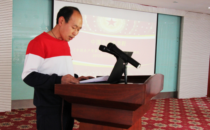 之后,敖德秀同志又帶領全體黨員、預備黨員、積極分子逐字逐句溫習黨章和黨誓,并舉行了做合格共產(chǎn)黨員,亮證掛牌活動儀式。