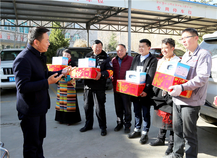 在藏歷新年和新春佳節(jié)來臨之際,2018年2月15日、16日,受公司黨委書記王斌同志委托,由公司黨委副書記、副總經(jīng)理陳彬同志,西藏阜康醫(yī)院院長阿旺建才、西藏阜康醫(yī)院院長歐珠羅布帶隊的雙節(jié)慰問小組集中慰問春節(jié)期間堅守在一線的專家、醫(yī)務(wù)工作人員、行政后勤員工及不能出院與家人團聚的患者。為他們送來了董事長的關(guān)心和問候,帶來了新年的美好祝愿和飽含暖暖情誼的慰問禮物。