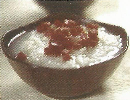 【做法】生地黃(鮮品洗凈細切后,用適量清水在火上煮沸約30分鐘后,潷出藥汁,再復箭煮一次,兩次藥液合并后濃縮至100ml,備用。將大米洗凈煮成白粥,趁熱加入生地汁,攪勻食用時加入適量白糖調(diào)味即可。