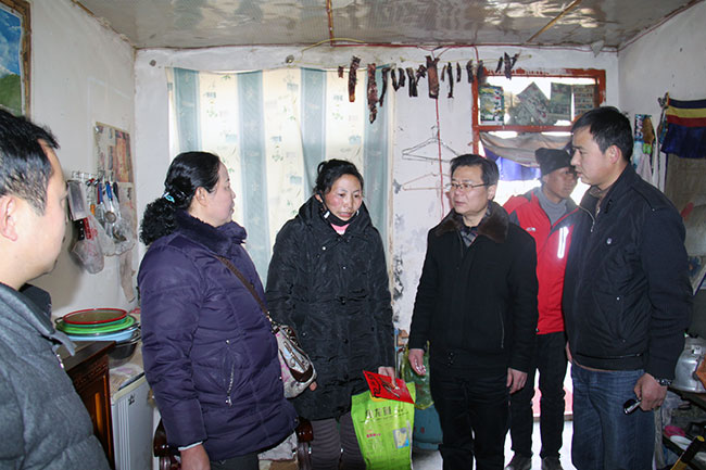 阜康婦產(chǎn)兒童醫(yī)院保潔組組長(zhǎng)昂旺桑姆租住在區(qū)防疫站低矮的出租房里,房子面積小、背陰,即使在陽光燦爛的日子里也須一直生火取暖。她的丈夫患有嚴(yán)重的高原心臟病,已經(jīng)喪失了勞動(dòng)能力,每日在家養(yǎng)病,所需醫(yī)療費(fèi)用成為家中一個(gè)極大的支出項(xiàng)目,與此同時(shí),她一個(gè)人的工資還要負(fù)擔(dān)兩個(gè)孩子的學(xué)費(fèi)、生活費(fèi),為此一家人只能租住在租金便宜、條件惡劣的出租房里?;顒?dòng)當(dāng)天,當(dāng)院領(lǐng)導(dǎo)來到她家時(shí),因?yàn)榉孔用娣e太小,一進(jìn)入室內(nèi)就已經(jīng)無法轉(zhuǎn)身,顯得特別的擁擠,說起家里的困難時(shí),昂旺桑姆語帶哽咽,淚盈于睫。