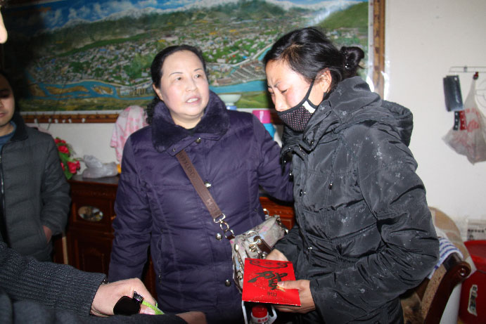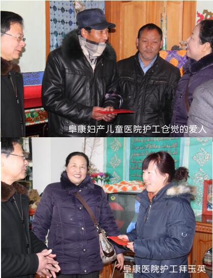 阜康集團(tuán)在2013年春節(jié)、藏歷年來臨之際,在阜康醫(yī)院、阜康婦產(chǎn)兒童醫(yī)院、阜康(國(guó)際)健康體檢中心三家醫(yī)院開展了“進(jìn)職工門、知職工情、暖職工心”送溫暖活動(dòng)。1月22日,公司下發(fā)了《關(guān)于開展2013年“雙節(jié)”送溫暖及特困職工幫扶活動(dòng)的通知》;2月1日,三個(gè)醫(yī)院的院領(lǐng)導(dǎo)對(duì)提交申請(qǐng)的員工進(jìn)行了資格審查,并最終確定了9名符合條件的員工為此次送溫暖活動(dòng)對(duì)象;2月3日,由阜康醫(yī)院李鋼副院長(zhǎng)、劉連福副院長(zhǎng)、阜康婦產(chǎn)兒童醫(yī)院呂果梅副院長(zhǎng)、阜康(國(guó)際)健康體檢中心席大力副院長(zhǎng)帶隊(duì),逐一將慰問金、大米食用油等慰問品送到了困難員工的家中。阜康婦產(chǎn)兒童醫(yī)院保潔員窮達(dá)的父母在她年幼時(shí)已經(jīng)過世,由于沒有文化,她只能選擇當(dāng)清潔工養(yǎng)家糊口,每月不到兩千塊錢的工資要供養(yǎng)弟弟妹妹上學(xué),要給弟妹生活費(fèi)、購(gòu)買學(xué)習(xí)資料的費(fèi)用,偶爾還要給弟妹買身新衣服,帶他們吃一頓好吃的,買一些營(yíng)養(yǎng)品。為了省下在外租房的錢,她選擇了入住醫(yī)院的員工宿舍,每天吃、住、上班都在醫(yī)院,她現(xiàn)在最大的心愿就是好好供養(yǎng)自己的弟弟妹妹上學(xué),讓他們考上大學(xué)有一個(gè)美好的前程,不用像自己一樣干最累的活掙最少的錢。窮達(dá)是一個(gè)愛笑的女孩子,即使說起這些困難時(shí)也總是堅(jiān)信只要弟弟妹妹有出息了,以后的日子就會(huì)好起來,她的樂觀向上時(shí)刻感染著身邊的每一個(gè)人,然而當(dāng)院領(lǐng)導(dǎo)將慰問金慰問品送到她手中時(shí),這個(gè)堅(jiān)強(qiáng)的女孩卻第一次在人前落了淚。阜康婦產(chǎn)兒童醫(yī)院保潔員曲宗租住在奪底路某個(gè)環(huán)境極差的小院子里20平方不到的出租房里,這樣的一間小房子是臥室是客廳也是廚房,然而生活的艱辛卻比不上她不幸的遭遇,她的丈夫沒有工作,一家人的生活全靠她微薄的工資,如果僅僅是如此還算差強(qiáng)人意,她那個(gè)不務(wù)正業(yè)的丈夫卻還經(jīng)常向她伸手要錢到外面去賭博、喝酒,一旦拒絕便是拳腳相向,且多次將她打得無法上班,甚至將她悄悄存起來的錢偷拿去喝酒賭博,每每說起這些事情,曲宗便是淚流滿面,無法自持,讓聞?wù)邿o不為之心酸。