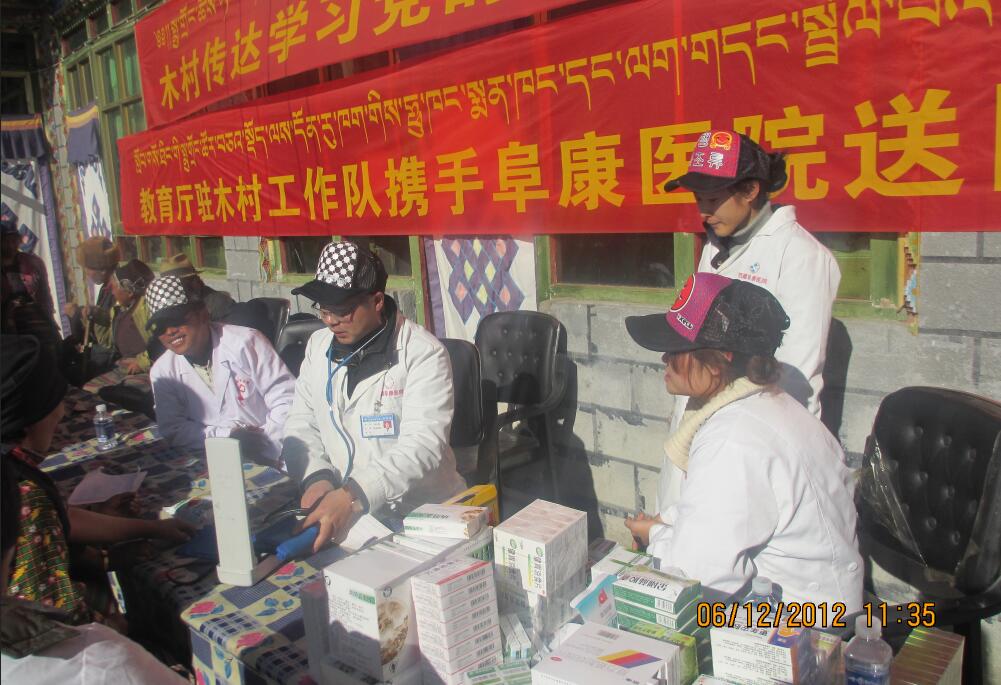2012年12月5日,上午10點(diǎn),拉薩的太陽高高地懸掛在天空,溫暖、舒適,我們四人在我院醫(yī)生王峰的帶領(lǐng)下,開著越野顛簸在高原崎嶇的路上。此行,帶著我們阜康人的溫暖、帶著我們的專業(yè)技術(shù)、帶著我們阜康醫(yī)院一萬多元的藥品,去山南洛扎縣木村,為當(dāng)?shù)氐睦习傩账歪t(yī)送藥。