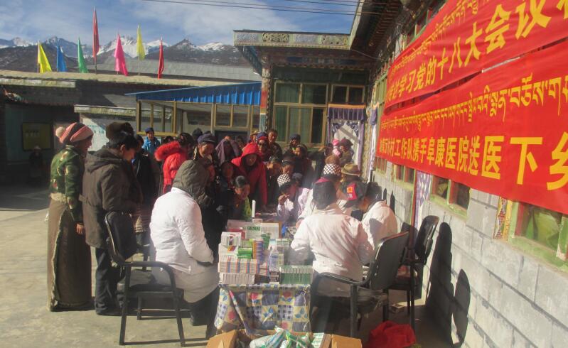 木村地處偏遠(yuǎn),路況差,冬天灰土揚(yáng)塵,夏天泥石流頻發(fā),村中物資短缺,蔬菜水果都是長途運(yùn)輸過來 屬于奢侈品,駐村干部一呆就要半年,與世隔絕,其中的艱苦不是我們可以想象的。此次送醫(yī)送藥下鄉(xiāng),不只是為當(dāng)?shù)匕傩账腿チ烁房档臏嘏?,更多的是讓我們這些城市醫(yī)生了解了村民生活的艱辛,了解了西藏駐村干部的不易,更堅(jiān)定了我們?yōu)槿嗣穹?wù)的信念。