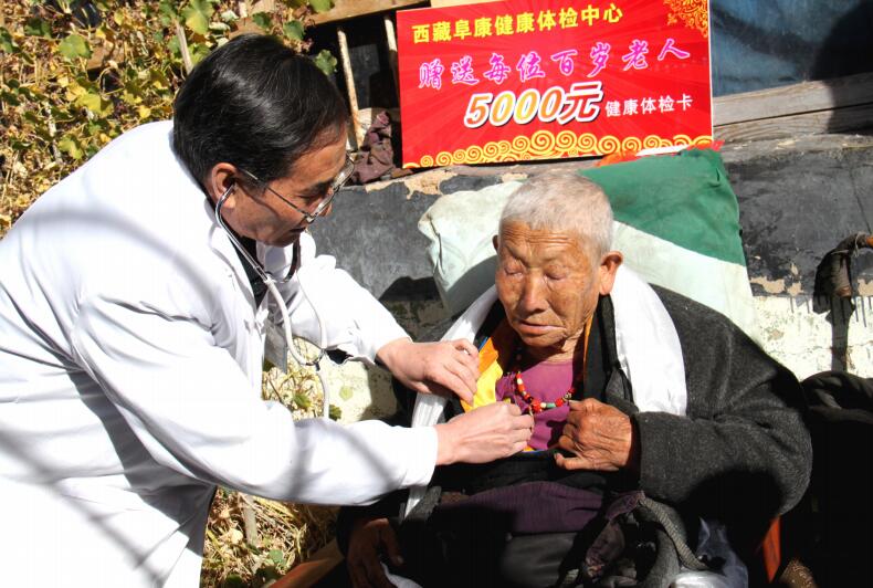 11位百歲老人有8位女性,3位男性。年齡最大的有110歲,最小的100歲。他們的居住地海拔都在3800—5000米,均為農(nóng)牧民。有三位居住在拉薩市區(qū),其中一位祖籍那曲索縣,一位林州縣,還有一位居住在柳梧區(qū)。百歲老人的健康狀況如下:十一位,除聽力、視力有所下降,個別血壓偏高外,心臟、肝腎、胃腸功能都很好,思維敏捷,記憶力都不錯,有的還能記得四、五十歲的事情。由此看來高原低氧環(huán)境或許能起到抑制人體過度氧化,從而延緩衰老的作用。
