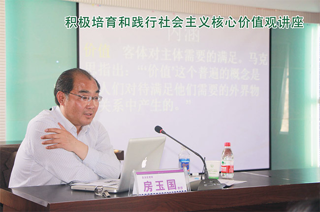 講座通過討論“新世紀(jì)的年輕人最缺乏的是什么?”相關(guān)內(nèi)容展開。房玉國教授從三個方面對此進(jìn)行了闡述:第一,培育和踐行社會主義核心價值觀是實現(xiàn)中國夢的助推器。核心價值觀蘊(yùn)含著人們對世界、人生、社會等一系列重大問題的價值共識,深刻影響著每個社會成員的思想觀念、思維方式、行為規(guī)范,是人們思想上精神上的靈魂旗幟。第二,培育和踐行社會主義核心價值觀是鞏固主流意識形態(tài)地位的導(dǎo)航燈。主流意識形態(tài)在各種意識形態(tài)中有明顯的導(dǎo)向作用,能統(tǒng)領(lǐng)全體社會成員的價值追求和理想信念。第三,培育和踐行社會主義核心價值觀是集聚社會正能量的粘合劑。培育和踐行社會主義核心價值觀是引導(dǎo)全社會在思想上共同進(jìn)步、端正社會風(fēng)氣的基本途徑。