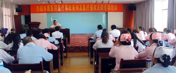 為了加強(qiáng)我院醫(yī)療質(zhì)量和醫(yī)療安全管理,防范醫(yī)療糾紛和醫(yī)療損害及事故,提高醫(yī)療糾紛調(diào)處能力和水平,創(chuàng)建和諧的醫(yī)患關(guān)系,2014年6月14至15日,我們特別邀請到西藏偉豪律師事務(wù)所律師同時(shí)也作為我院法律顧問的胡可律師到我院開展為期兩天的“關(guān)于醫(yī)療事故條例及醫(yī)療侵權(quán)”的法律專項(xiàng)培訓(xùn)。