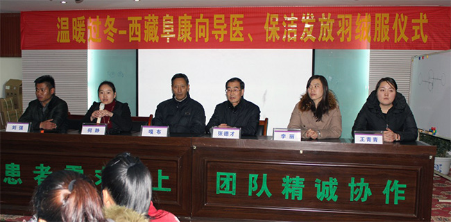 入冬以來,拉薩的氣溫降至零度以下。優(yōu)質(zhì)服務(wù)辦為三家醫(yī)院的保潔、導醫(yī)購買了棉衣并2014年12月16日在婦產(chǎn)兒童分院四樓舉行發(fā)放儀式。張德才院長、嘎布院長等院領(lǐng)導出席此次發(fā)放儀式。