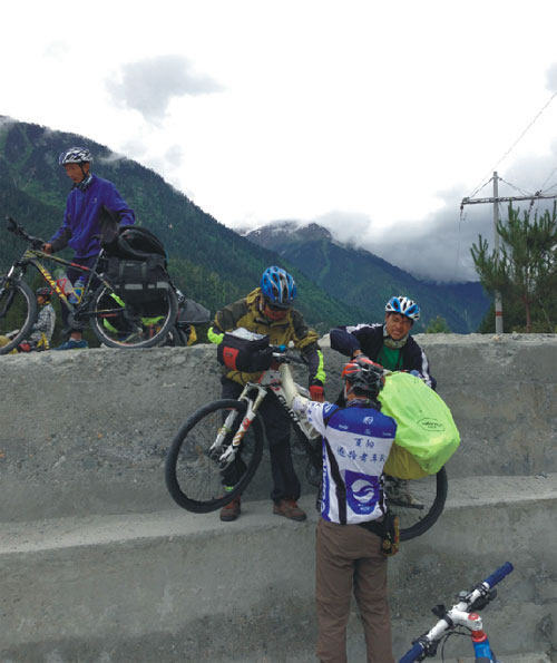 從陵園出來(lái)不久,得知那個(gè)女隊(duì)友還是堅(jiān)持騎行,于是我返回去接她,陪她一起騎行。當(dāng)我在路上碰到她的時(shí)候,她笑著問(wèn)我為什么不在前面等。要多走這么一段路。我說(shuō)我害怕孤單所以找你陪我一起,她感動(dòng)得什么也沒(méi)說(shuō)。這一天我們互相幫助通過(guò)了一段好幾公里的落石區(qū)。
