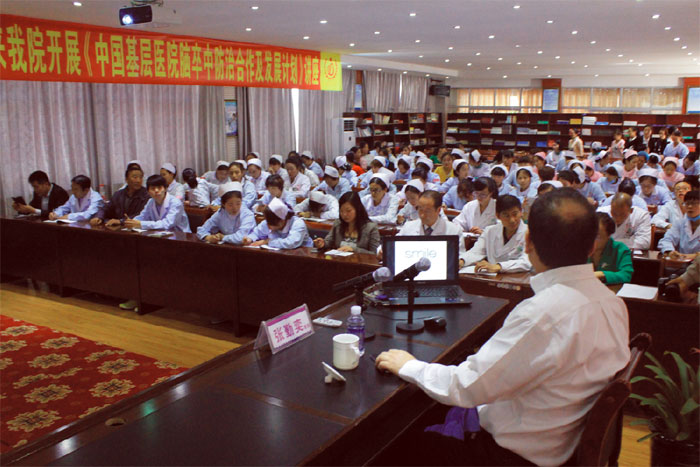 2015年8月24日,北京安貞醫(yī)院腦卒中中心主任、留美醫(yī)學(xué)博士、心血管外科教授、頸動(dòng)脈內(nèi)膜剝脫術(shù)(CEA)專家、中美腦中風(fēng)協(xié)助組中方組長(zhǎng)張勤奕先生不遠(yuǎn)萬(wàn)里來(lái)我院視查工作,并開展了《中國(guó)基層醫(yī)院腦卒中防治合作及發(fā)展計(jì)劃》講座。