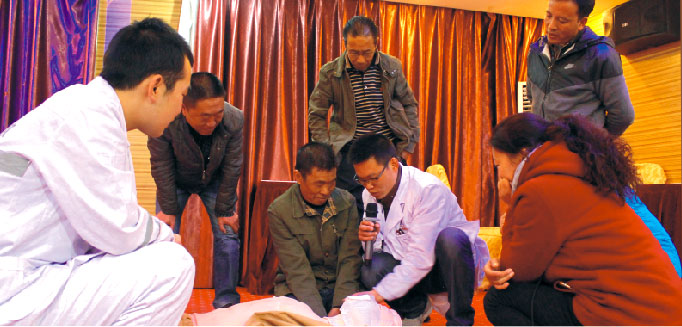 2016年3月24日,我院受邀于國網(wǎng)西藏直孔發(fā)電公司開展緊急救護(hù)培訓(xùn),由內(nèi)科醫(yī)生盤允、急診科護(hù)士肖明洋分別就“創(chuàng)傷院前急救技術(shù)”及“心肺復(fù)蘇概述”等相關(guān)專業(yè)知識(shí)進(jìn)行講解。
