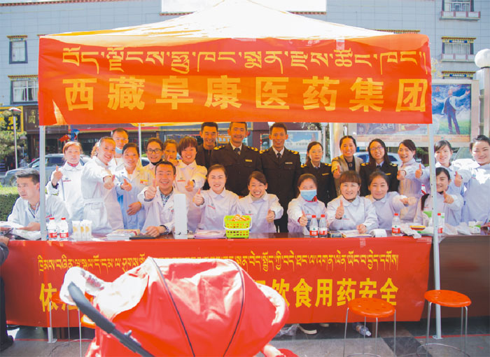 2016年10月14日上午,西藏阜康醫(yī)藥發(fā)展有限公司組織16名醫(yī)護(hù)人員于拉薩市宇拓路迎賓館旁建立免費(fèi)義診宣傳點(diǎn),積極參加由拉薩市食品藥品監(jiān)督局牽頭組織的“全國(guó)安全用藥月”主題宣傳活動(dòng),宣傳藥物濫用的危害、普及安全用藥知識(shí)、引導(dǎo)廣大社會(huì)群眾樹立安全合理用藥的意識(shí),同時(shí)免費(fèi)為過往的群眾測(cè)血壓、血糖,免費(fèi)看病及發(fā)放維生素、鈣片、風(fēng)濕及心腦類等價(jià)值一萬(wàn)兩千余元藥品。