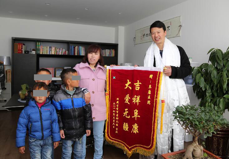 2016年,阜康醫(yī)院與吉吉盲童幼兒園建立幫扶關(guān)系,幫扶對(duì)象無(wú)償提供醫(yī)療救治,為該園在醫(yī)院開展綠色就醫(yī)通道,并捐助1萬(wàn)元慰問(wèn)金。為了表達(dá)對(duì)王斌董事長(zhǎng)的感激之情,2017年3月10日,在吉拉園長(zhǎng)的帶領(lǐng)下,幼兒園小朋友來(lái)到醫(yī)院為王斌董事長(zhǎng)獻(xiàn)上哈達(dá),并送上錦旗“吉祥阜康 大愛無(wú)疆”。