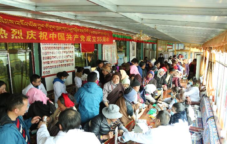 2017年3月28日,西藏阜康藥店聯(lián)合黨支部組織一支醫(yī)療小隊,前往當雄縣烏瑪塘鄉(xiāng)郭尼村居委會開展免費義診活動。